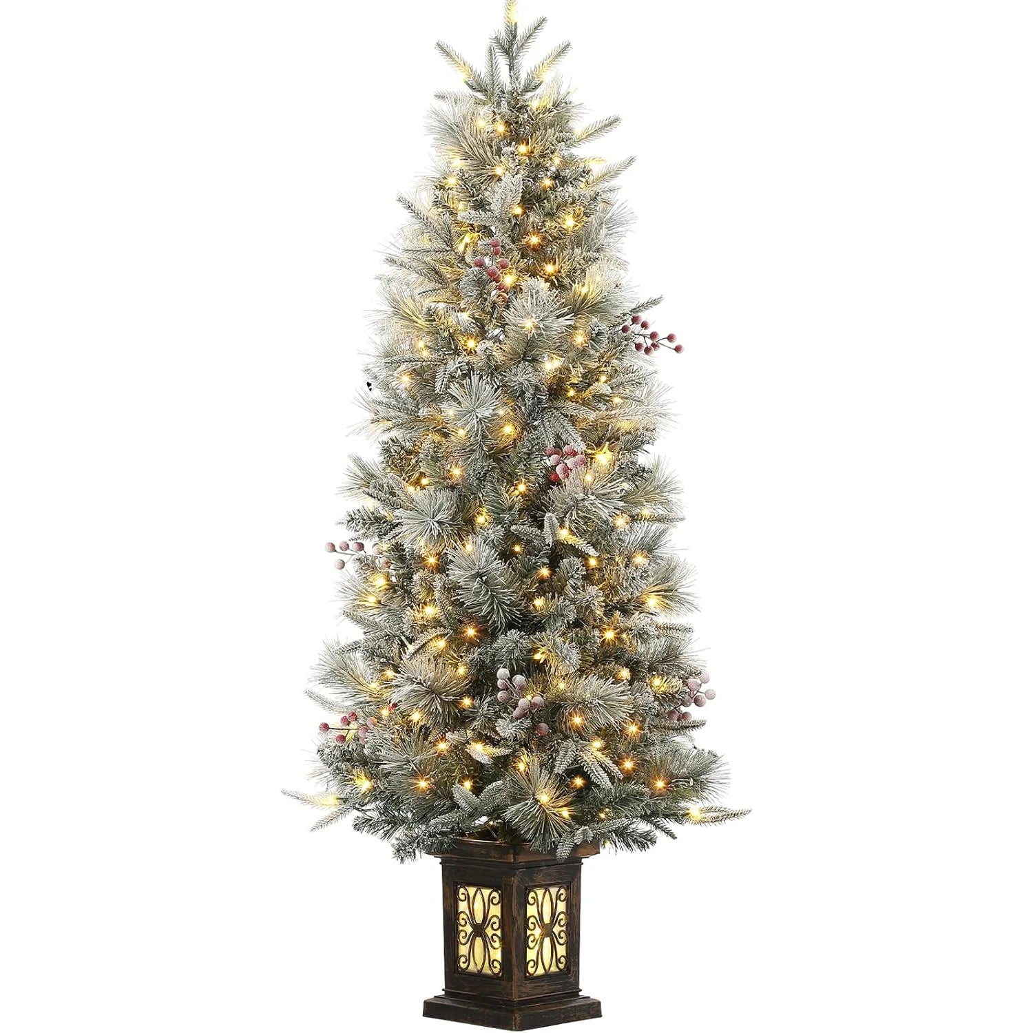 Light up your holidays with a lush, pre-lit, flocked Christmas tree that brings cozy woodland charm, modern brightness, and effortless elegance to any room.