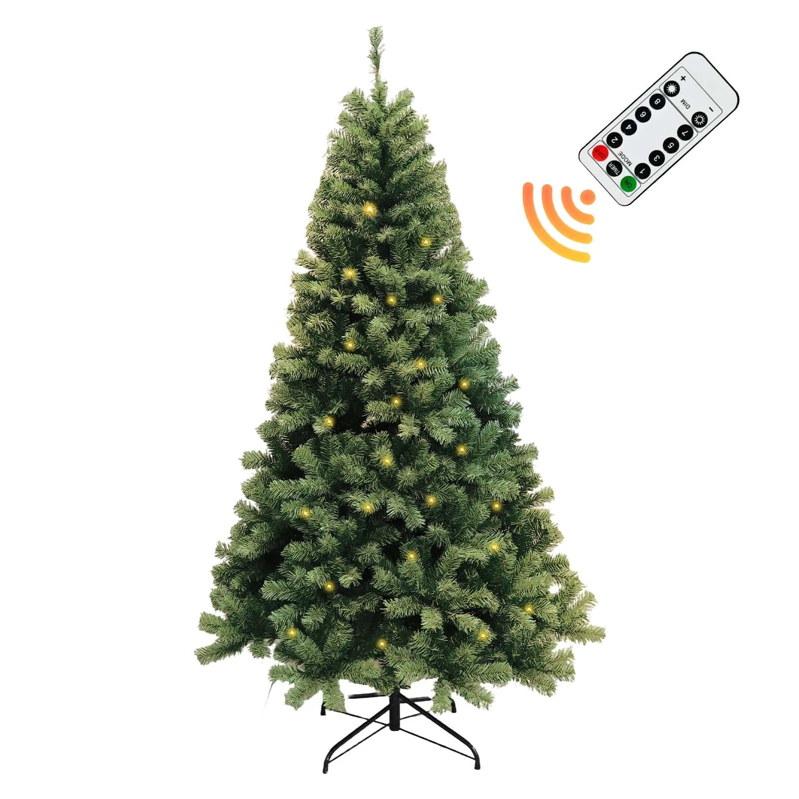 6-7ft Pre-Lit Christmas Tree, Artificial Hinged Xmas Tree With LED Lights, 8 Lighting Modes for Home Christmas Decoration