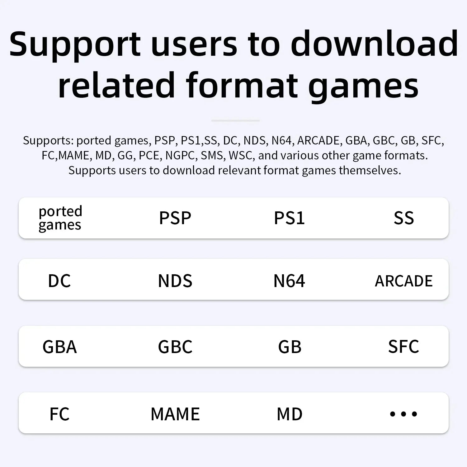 - You’ll access 5,000+ retro games on an OpenDingux-based system, with language support including English, Japanese, French, German, Spanish, Russian, Korean, Portuguese, and Simplified Chinese.