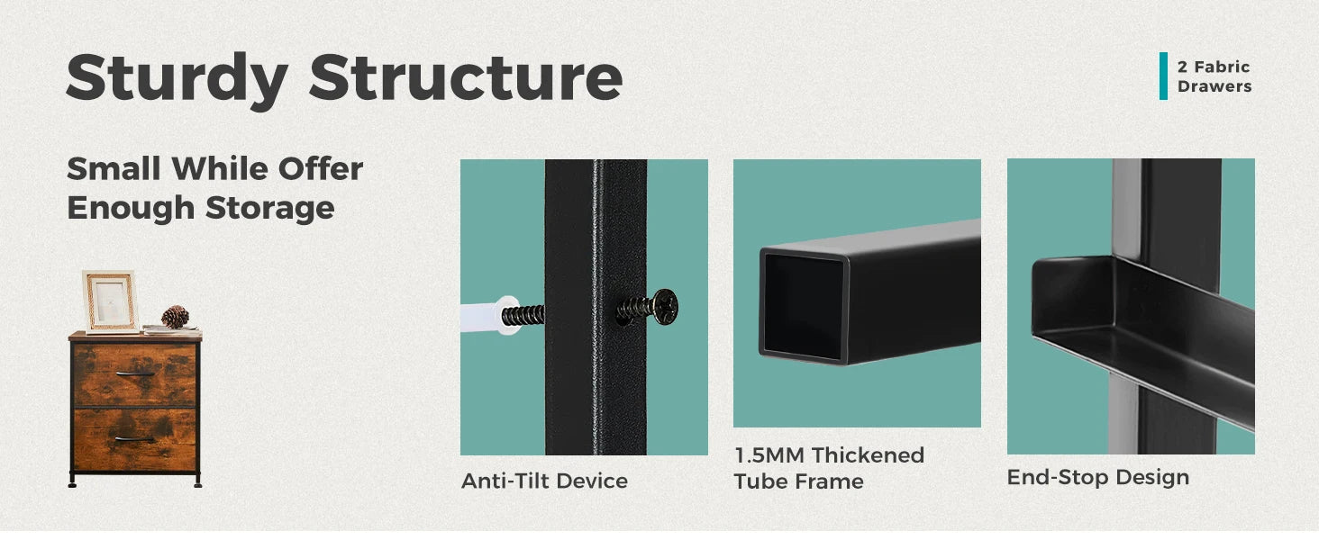 JHK Nightstand Bedside Coffee Sofa Tea Table Storage Closet Chest Clothes Display For Bedroom 2 Fabric Drawers Cabinet Furniture