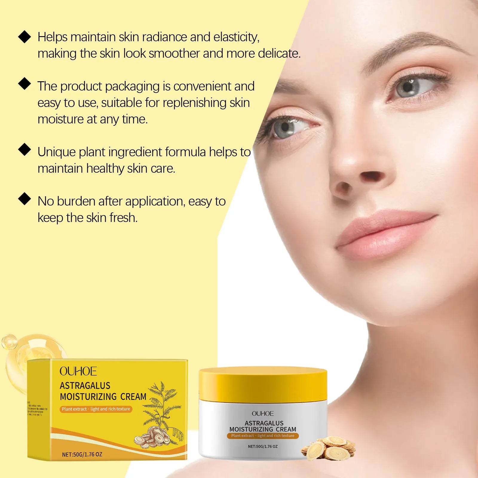 OUHOE Astragalus Moisturizing Cream - Even Skin Tone, Deep Moisturize, Light Texture, All Skin Types, Daily Use