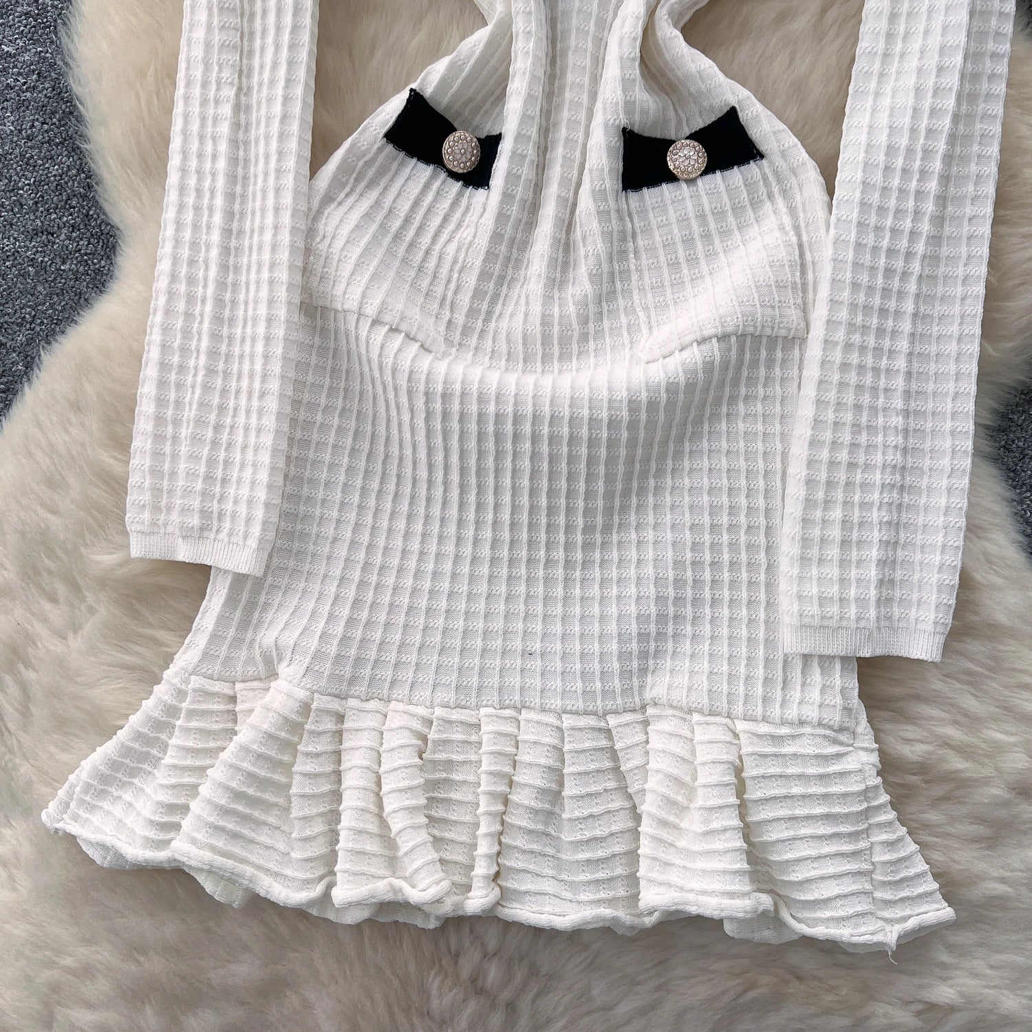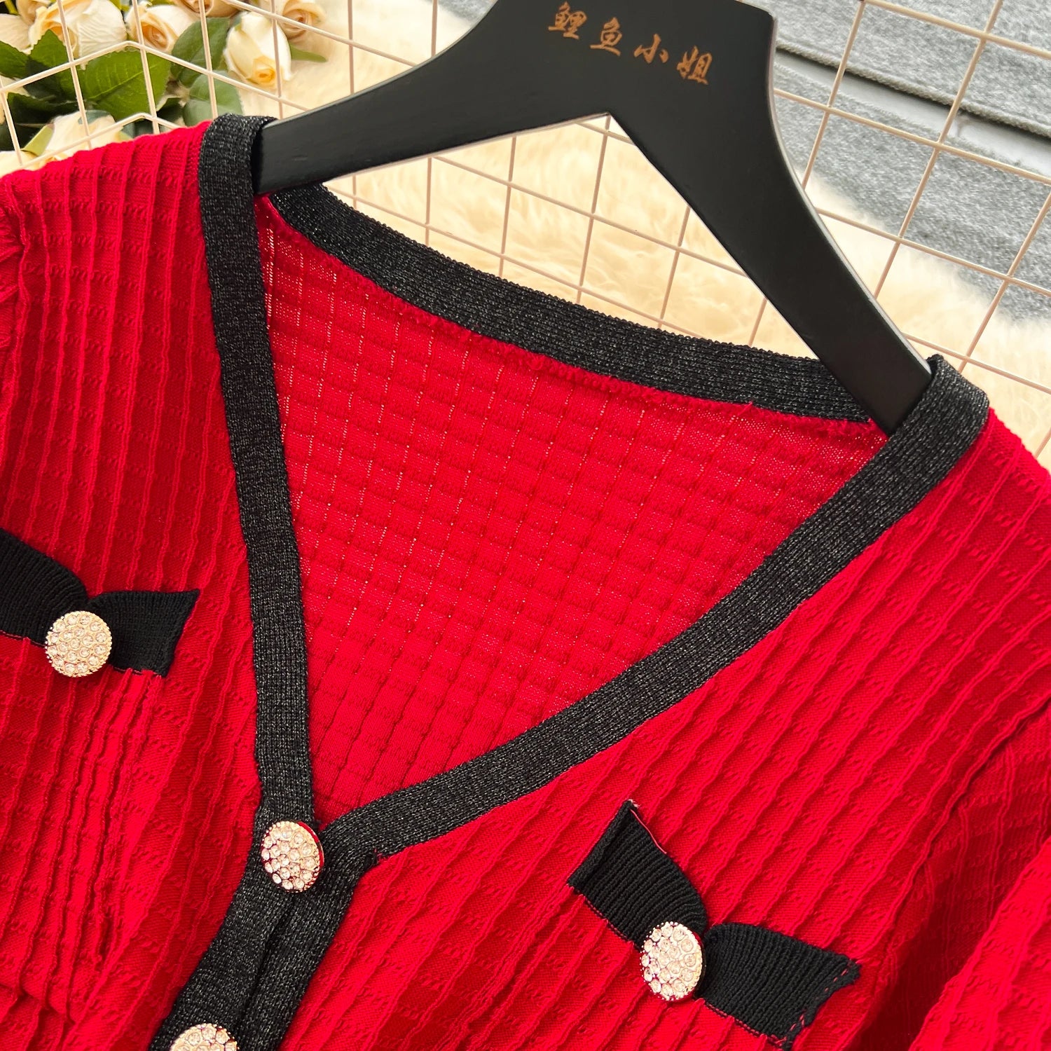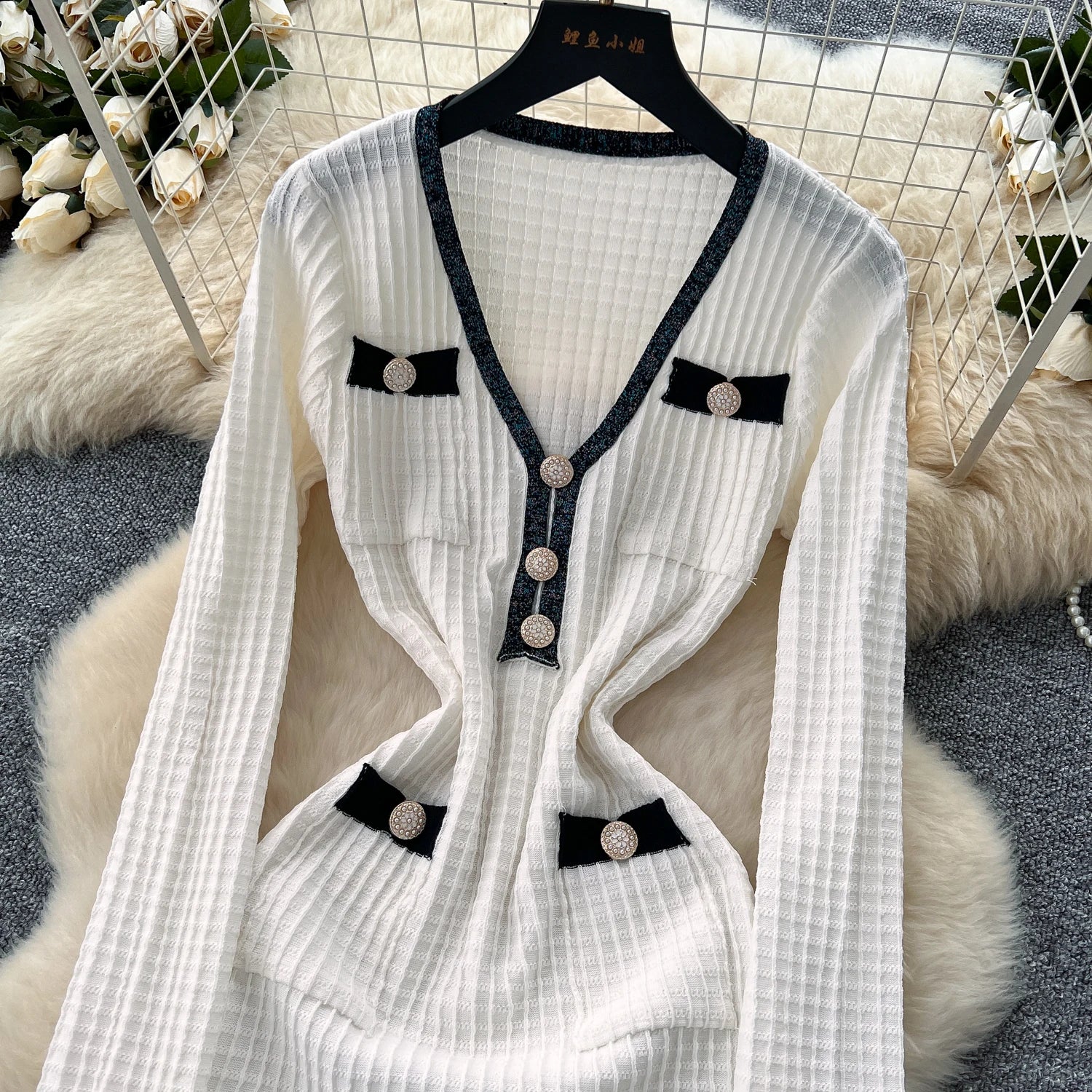 SR.Singreiny Chic V Neck Button Knit Dress For Women